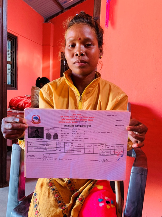घर मात्रै बनेन । घर बन्दै गर्दा उनको नागरिकता बन्यो, अपांगता परिचयपत्र बन्यो । आफ्नो नाममा जग्गाधनी पूर्जा बन्यो । उनी घरको मात्रै होइन, जग्गाको पनि मालिक भइन् ।