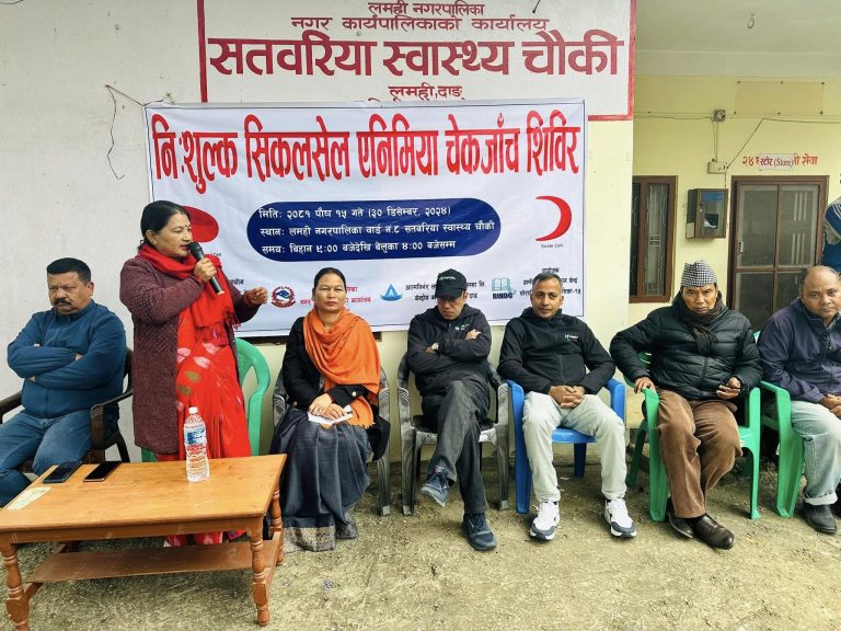 ग्रामीण महिला उत्थान केन्द्र घोराही दाङको आयोजना तथा मेट लाईफ नेपालको सहयोग एंव लमही नगरपालिका र आत्मनिर्भर लघुबित्त वित्तीय संस्था लिमिटेडको समन्वयमा आज निःशुल्क सिकलसेल एनीमिया चेकजाँज शिबिर लमही नगरपालिका ८ सतबरिया स्वास्थ्य चौकीमा सम्पन्न भएको छ ।