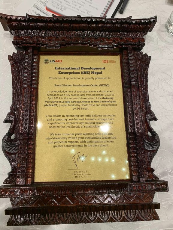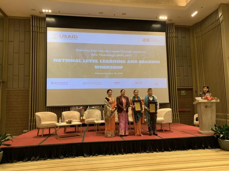 May 9,2024: Dang Ghorahi: iDE Nepal has conducted a one day national level learning and sharing workshop in Kathmandu to showcase the results and outcome of the -Reducing Post harvest Losses through Access to New Technologies (RePLANT) project which was implemented in Dang and Banke through the local NGOs (RWDC Dang and SDF Banke) for the period of Jan 2023 to April 2024.