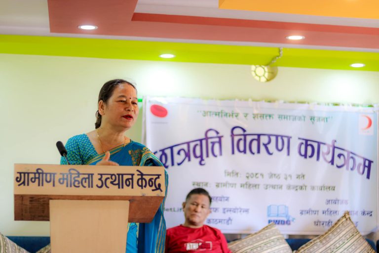 The scholarship distribution program was formally addressed by RWDC founding chairperson Aasmani Chaudhary, while other guests included Kamala Chaudhary, treasurer Mira Chaudhary. The program was hosted by Prabati Basnet